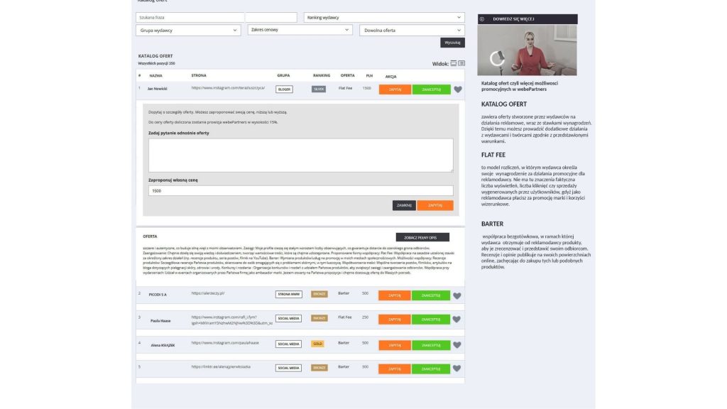 W naszym Katalogu Ofert znajdziesz propozycje współpracy z twórcami internetowymi w dwóch popularnych modelach: