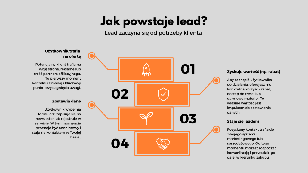Lead marketingowy to osoba, która wykazała zainteresowanie Twoją ofertą – zostawiła dane kontaktowe, zapisała się na newsletter, pobrała materiał lub wypełniła formularz. To moment, w którym anonimowy użytkownik staje się potencjalnym klientem.