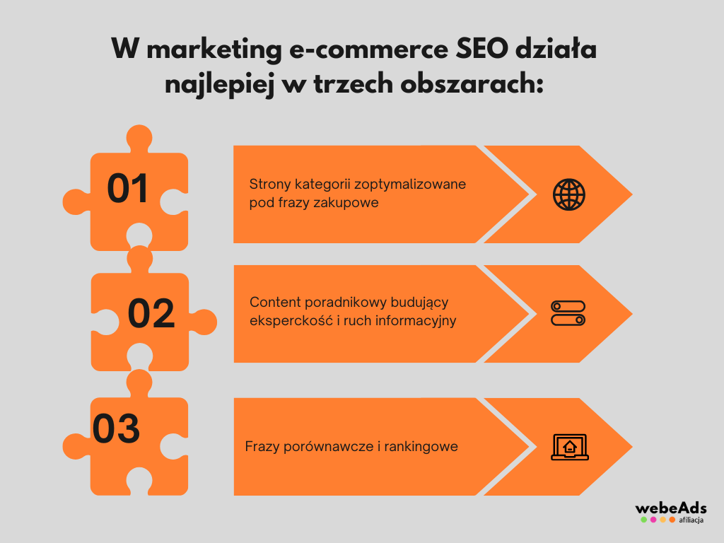 SEO nie generuje natychmiastowych efektów, ale w marketing for ecommerce jest fundamentem stabilnego wzrostu i zmniejszania zależności od płatnych kampanii.